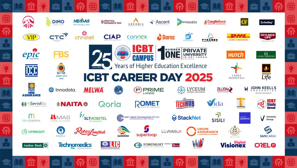 ICBT Career Day is an annual event that brings together leading employers and talented students for meaningful networking, recruitment, and career opportunities. Organized by ICBT Campus – Sri Lanka’s premier private sector higher education provider with a strong track record of producing industry-ready graduates – the event serves as a trusted platform for companies to connect with skilled professionals across diverse streams of study. With thousands of graduates entering the workforce each year, ICBT is committed to bridging the gap between education and employment, empowering both employers and students to achieve success together